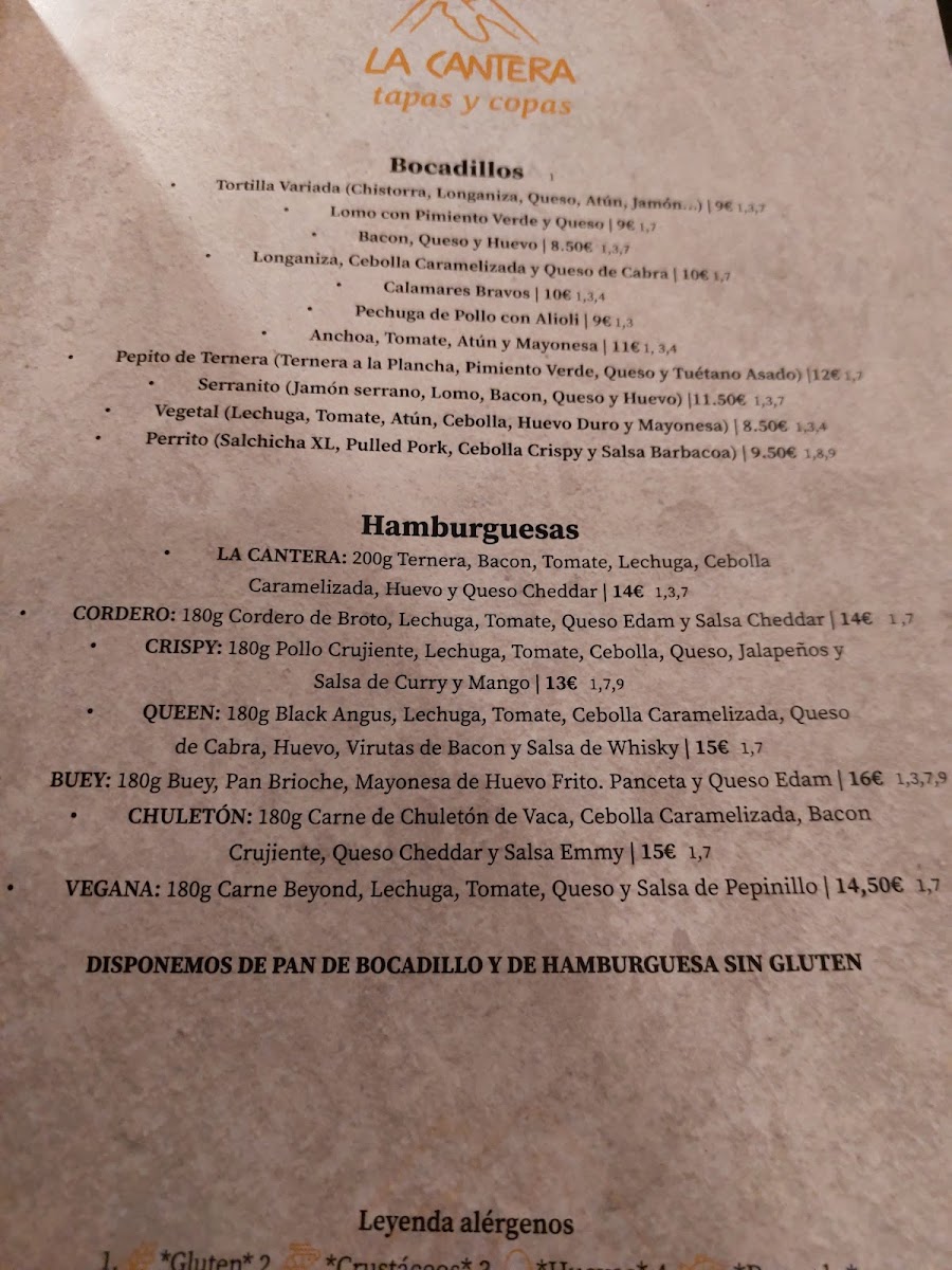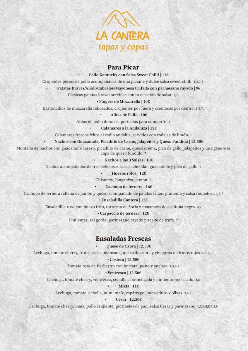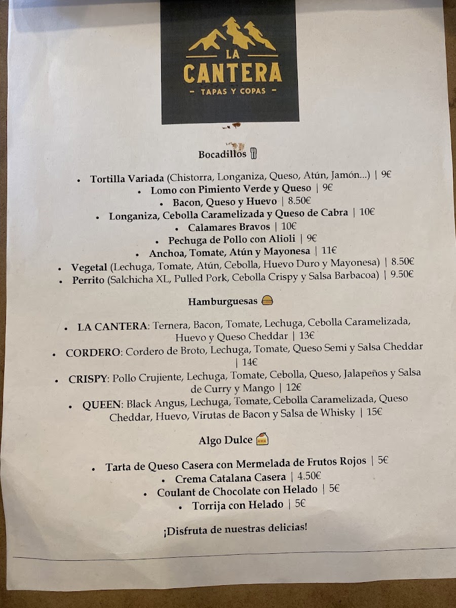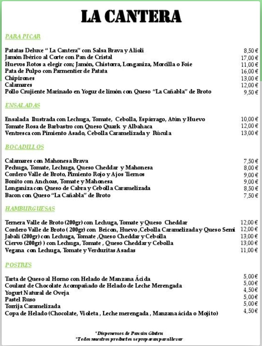 La Cantera Menu